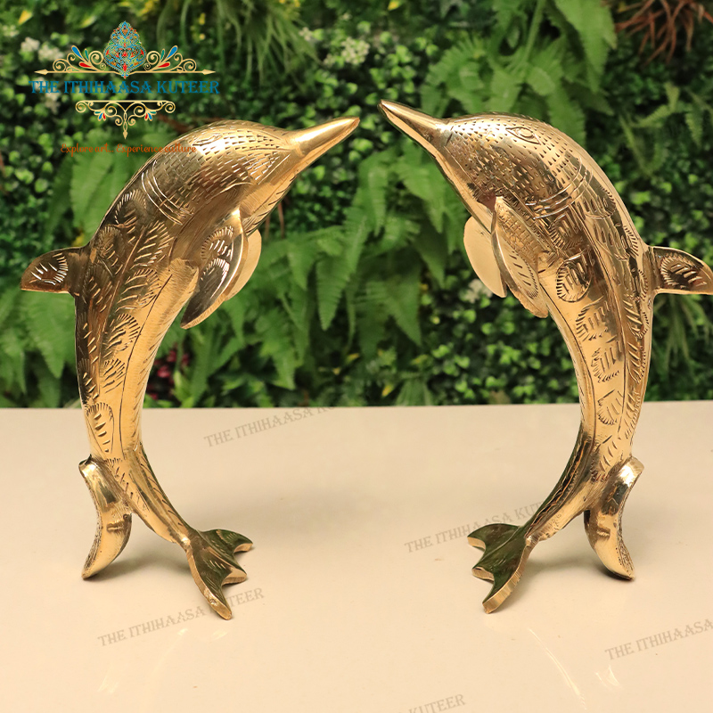 Enhance your space with this elegant 9-inch Brass Dolphins Set, symbolizing harmony and playfulness. Beautifully handcrafted, these dolphins bring a sense of fluid motion and charm to your home or office décor. Ideal as a gift or statement piece, their polished brass finish adds a touch of luxury and sophistication to any setting.