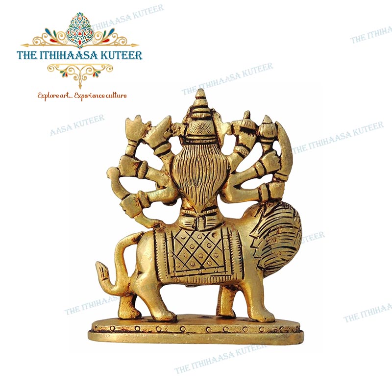 Beautifully handcrafted in brass, this 3.5 inch Durga Devi idol radiates power, protection, and divine grace. Featuring the goddess in a majestic form with intricate detailing and an antique finish, this compact piece is ideal for pooja rooms, home altars, or spiritual shelves. A symbol of inner strength and devotion, it serves as a powerful devotional accent and a meaningful gift for those seeking blessings and spiritual energy.