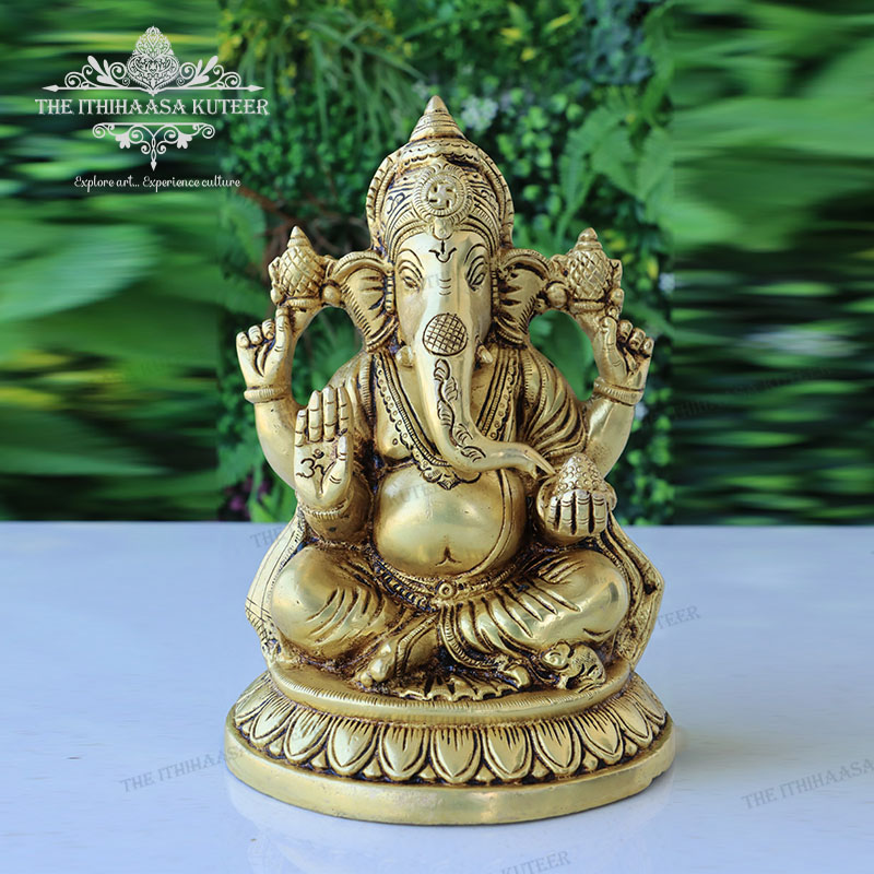 Description: Invite divine wisdom and prosperity into your space with this finely crafted Brass Lord Ganesh Idol. Depicted in a serene and graceful posture, Lord Ganesha symbolizes success, knowledge, and the removal of obstacles. The intricate craftsmanship and polished brass finish make it a timeless addition to pooja rooms, shelves, or workspaces.