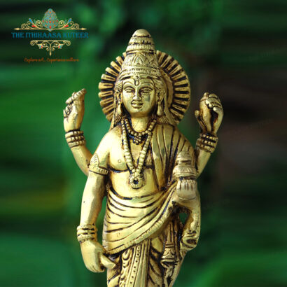 Crafted with reverence, the Brass Dhanvanthri Idol embodies the divine healer of Ayurveda. A symbol of health, vitality, and wisdom, this intricately designed idol is ideal for pooja rooms or healing spaces. Its rich golden hue and detailed features make it a graceful addition to your spiritual décor, inspiring wellness and inner balance.
