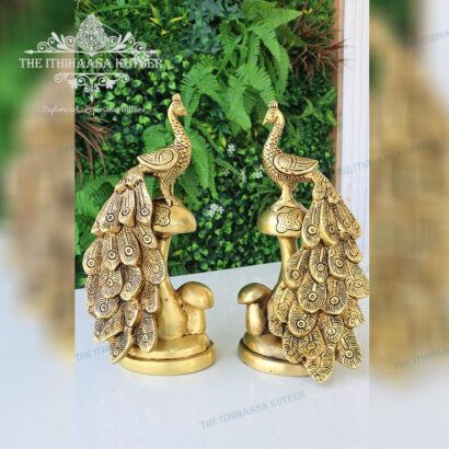 Description: Gracefully handcrafted in brass, this Twin Peacock Decor Set captures the majestic beauty and cultural symbolism of the peacock representing grace, royalty, and spiritual awakening. Adorned with intricate detailing and a rich antique finish, the pair brings a touch of artistic elegance to any living space, console table, or shelf. Perfect as a decorative accent or a thoughtful gift, this set adds timeless charm and sophistication to traditional or contemporary interiors.