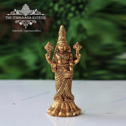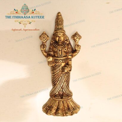 Description: Gracefully handcrafted with intricate detailing, this 6-inch Lord Balaji idol embodies divine presence and traditional South Indian artistry. Featuring a timeless design with an antique finish, it exudes spiritual charm and cultural richness. Ideal for home altars, shelves, workspaces, or as a thoughtful gift, this compact yet captivating piece brings a sense of devotion, serenity, and heritage to any setting.